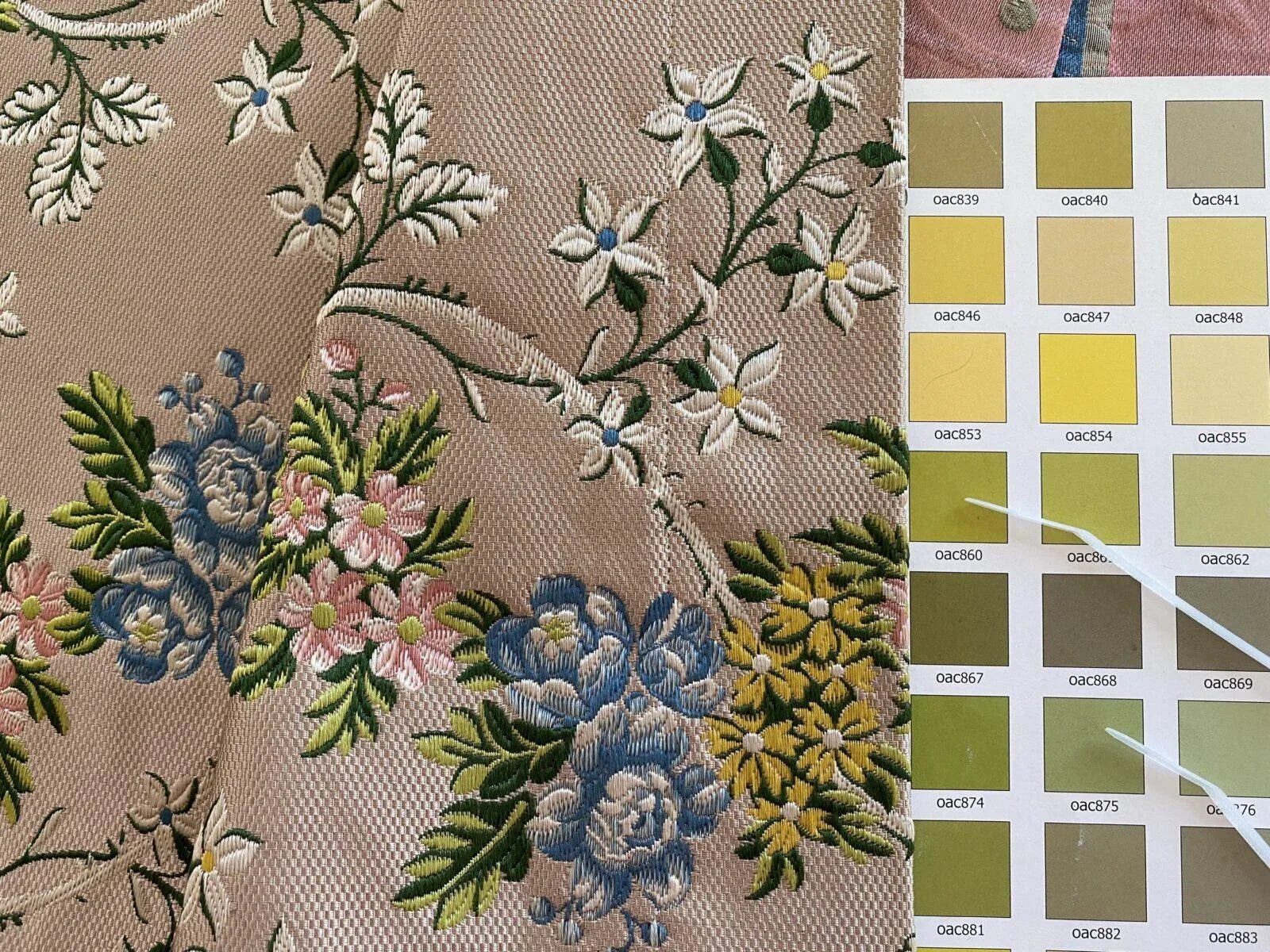 2.5y Tassinari & Chatel Scalamandre 100% Silk Lampas “la Favorite” Flower Lace Pink Blue Green Yellow MSRP USD 2180/yard