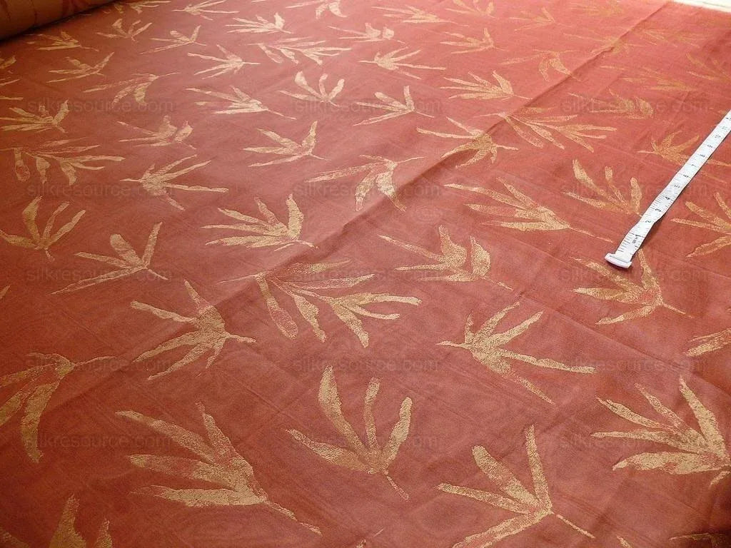 Telio & Cie Silk Bamboo Leave Silk Lampas Red Gold Bty