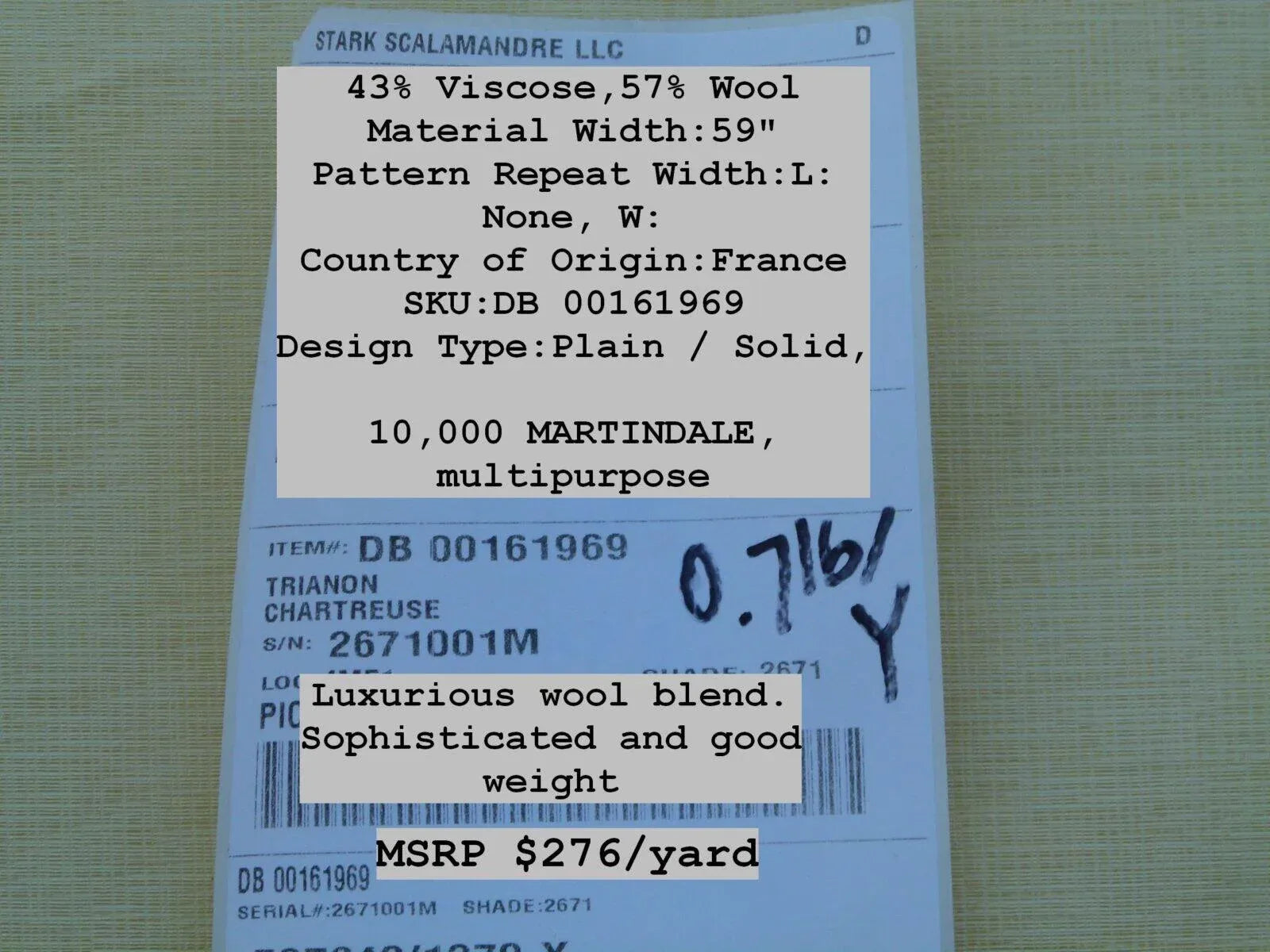 Texture at its best! Superb sheen, subtle texture, good weight & durability. MSRP $276/yard. 43% Viscose,57% Wool