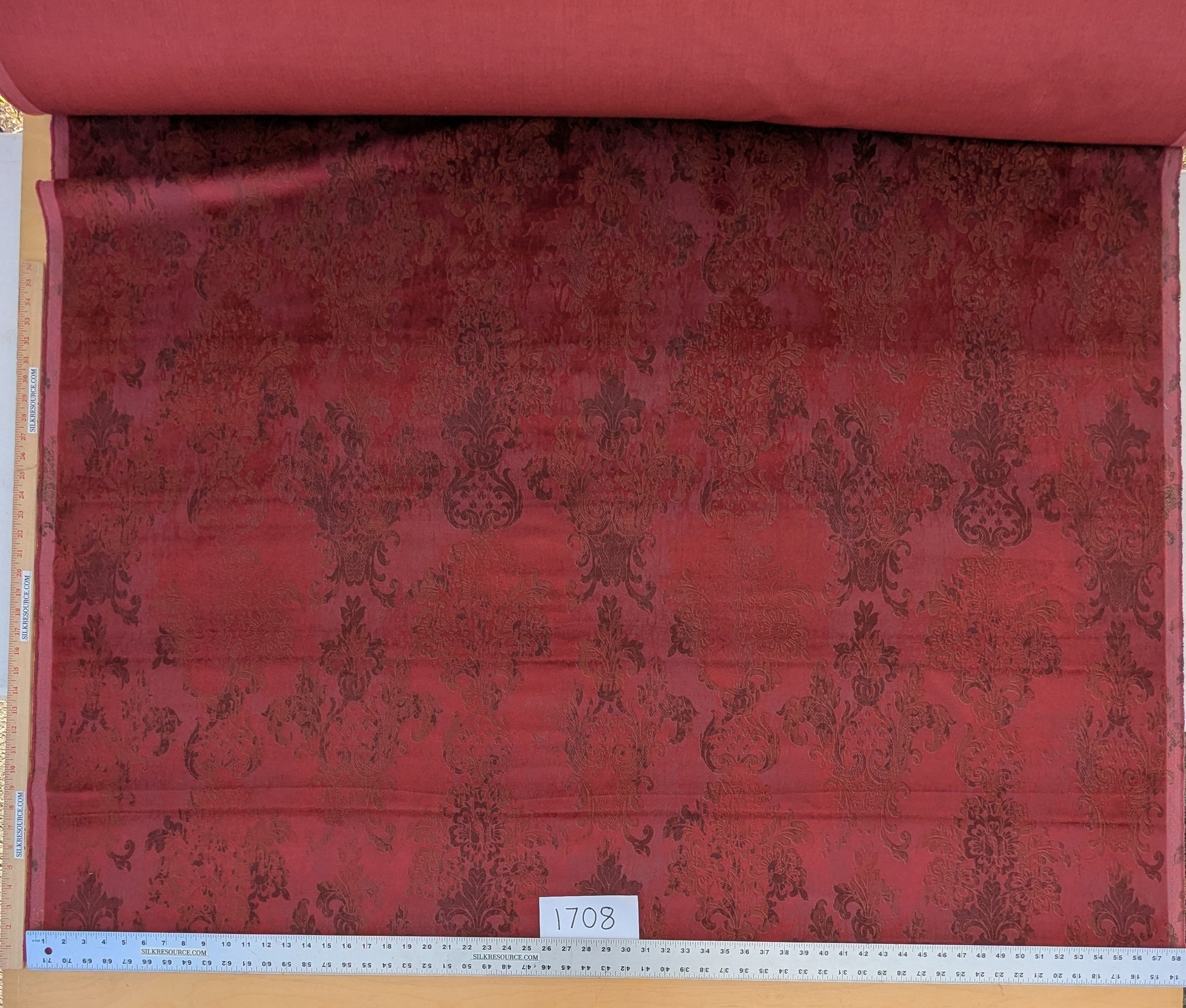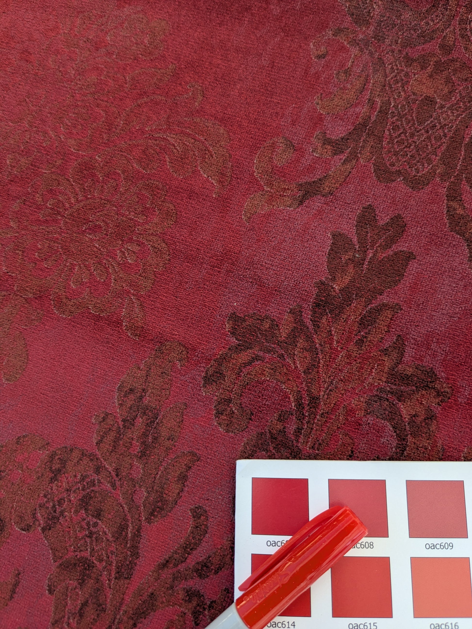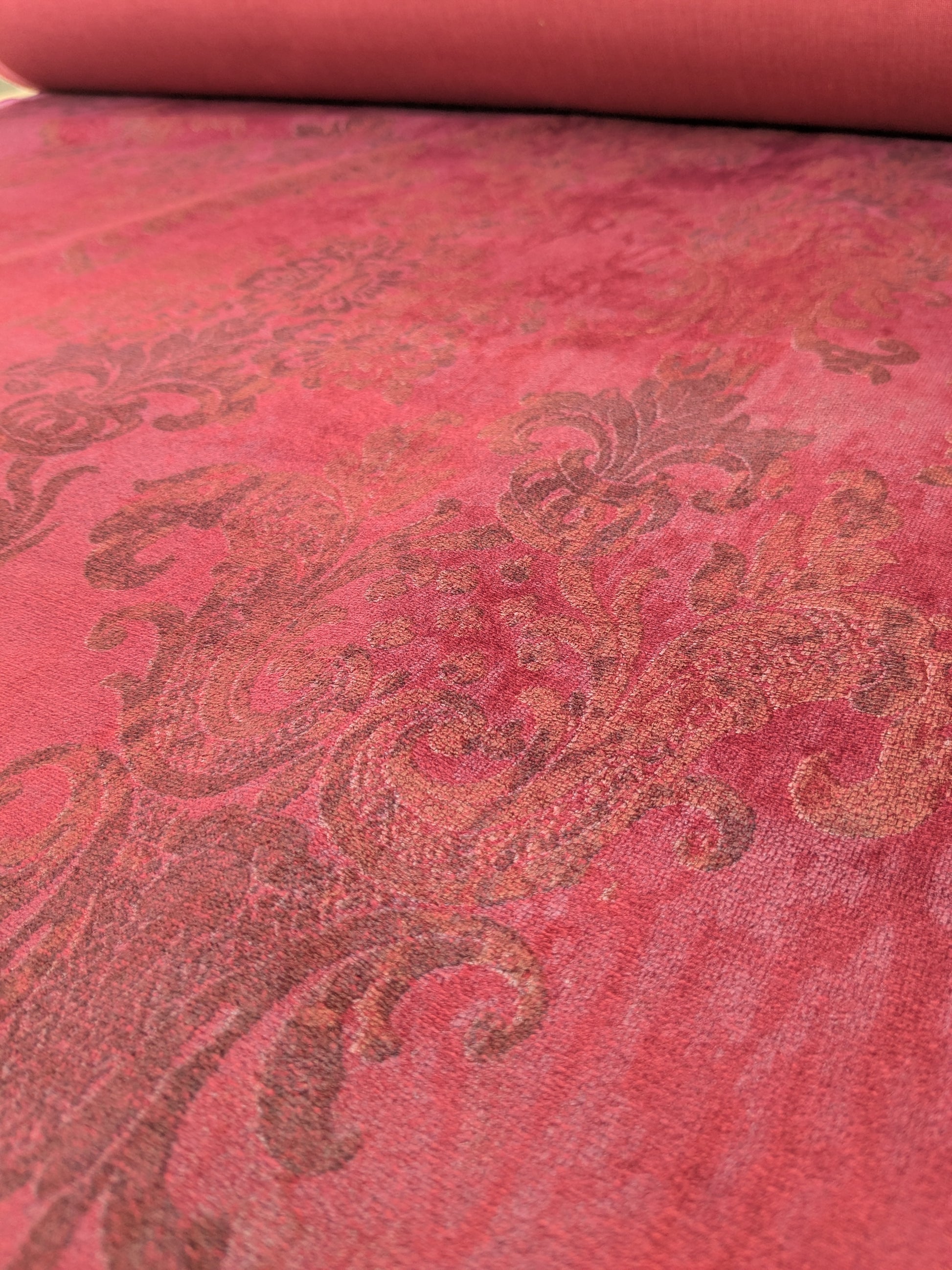 Venice Ruby Velvet Rich Red Printed Renaissance Damask Radiance