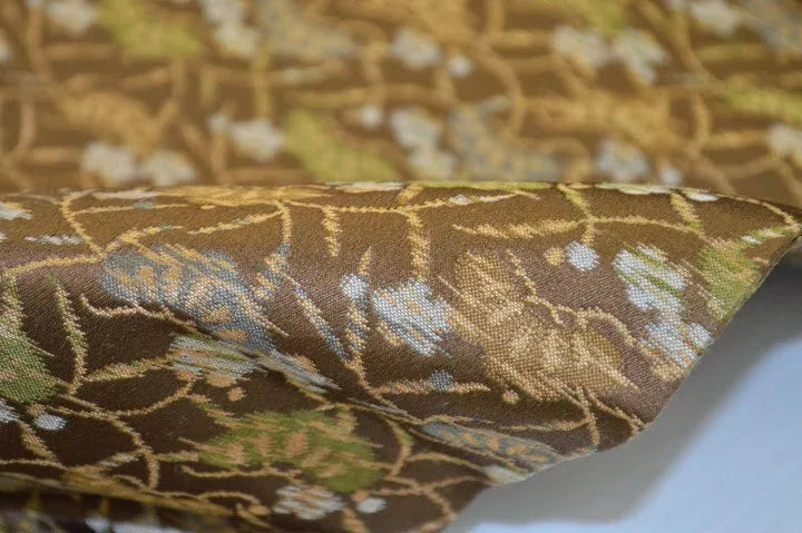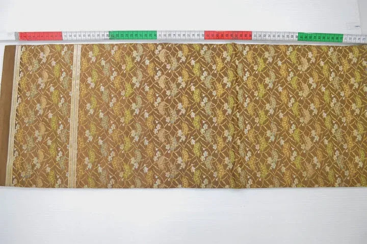 Vintage Silk Maru Obi Pine Tree Plum Blossom Brown